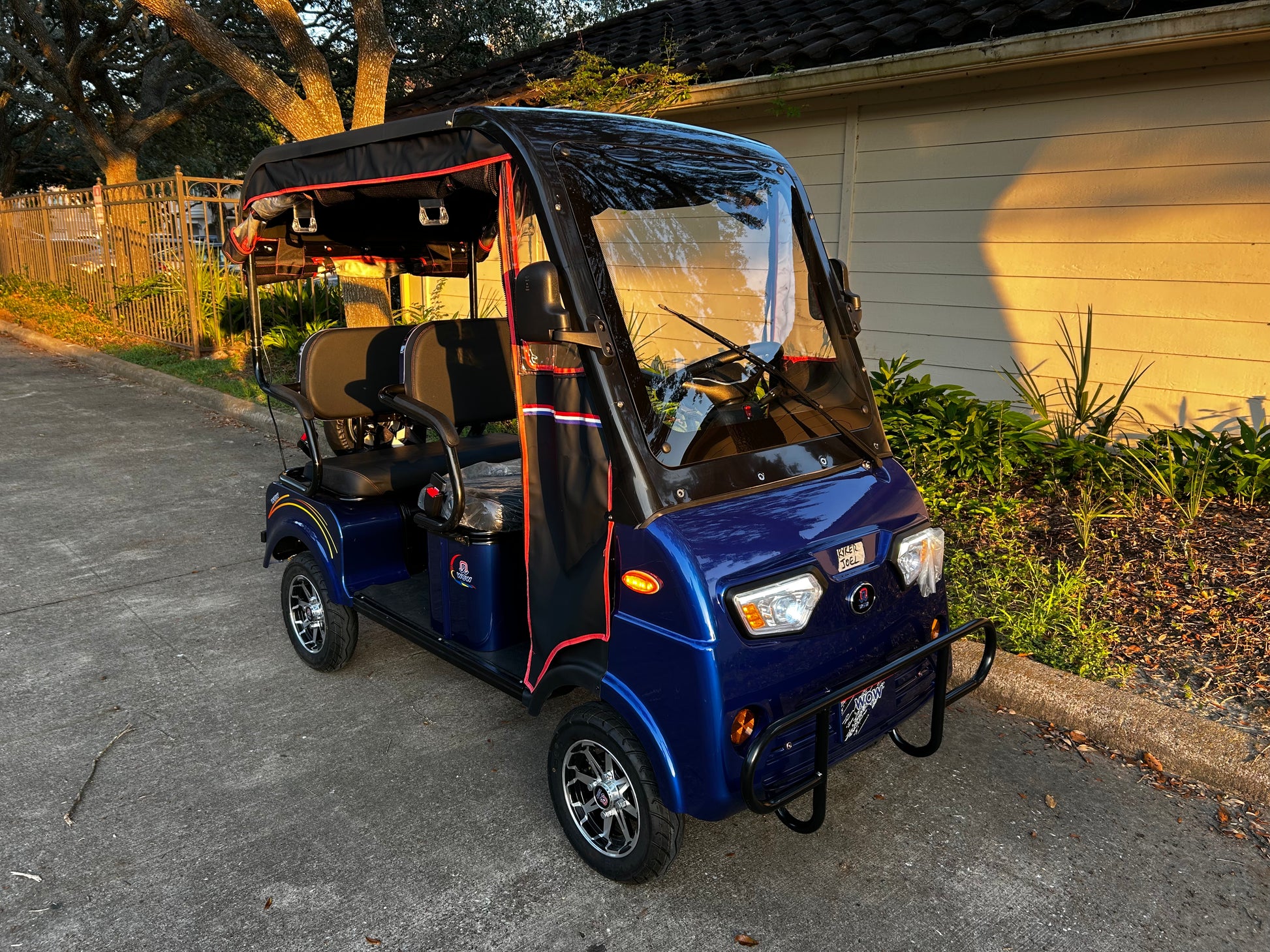 Compact, electric, and fun. Perfect for neighborhoods, gated communities, ranches, and the course. Quiet operation, simple plug-in charging, and easy to drive. Comes with bluetooth and weather cover! Operational windshield wipers, lights, blinkers and spare!